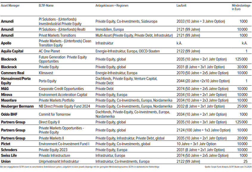Beispiele verschiedenener ELTIFs (ohne Gewähr)